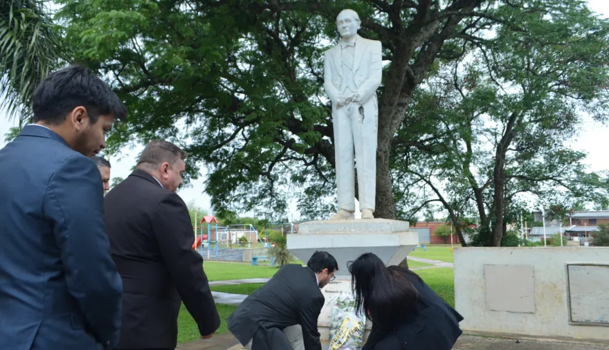 Dejaron una ofrenda floral a los pies del monumento que tiene el expresidente en la plaza que lleva su nombre. Destacaron que Frondizi sobresale en la historia nacional por su “visión de desarrollo”.