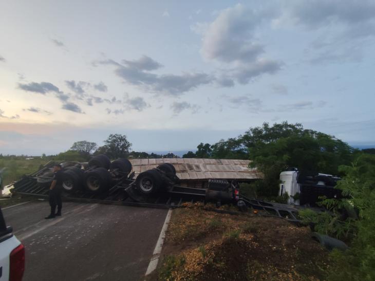 El Comisario de Esquina, Ramon Ruggeri, informó a Radio del Guaran que a las 03:00 horas se produjo el despiste y vuelco de un camión en el kilómetro 676 de la Ruta Nacional 12, cerca de Arroyo Vega. El vehículo involucrado es un Mercedes Benz (dominio del camión AH882WE, semi AC338NW) que transportaba morrones.