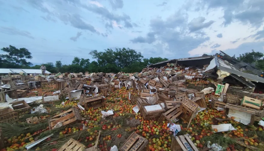 Vecinos aprovecharon el vuelco de un camión con verduras en la Ruta 12, cerca de Esquina